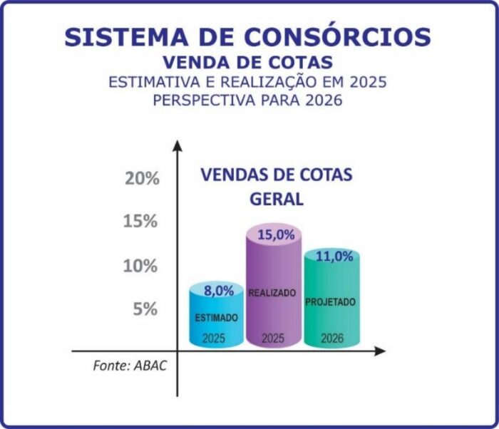 Nesse contexto, Barbagallo avalia que 2026 deve ser um ano de superação de desafios. “Há possibilidade de obtenção de novos recordes de adesões, negócios e participantes. Calculamos, que, a exemplo de 2025, o Sistema de Consórcios possa crescer um pouco mais e atingir até 11,0%, cinco pontos percentuais maior que o estimado para o ano passado”, disse.