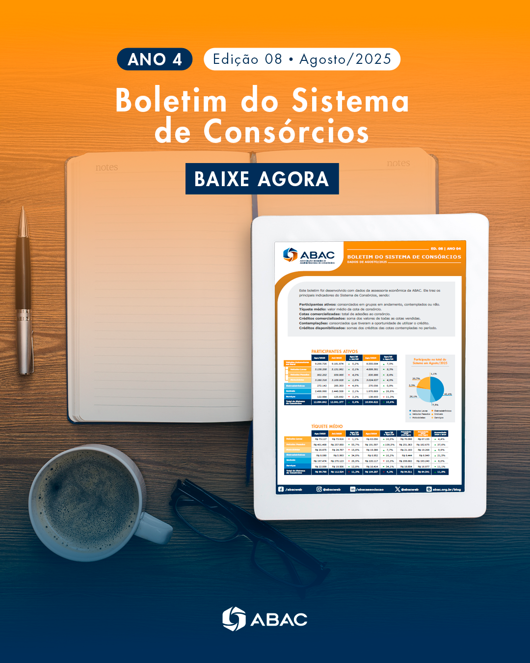 Baixe o Boletim do Sistema de Consórcios – Julho/2025 e conheça em detalhes o desempenho do setor. Faça o download grátis clicando aqui ou na imagem abaixo.